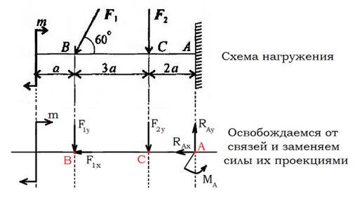 Пример определения опорных реакций консольной балки (защемление или жёсткая заделка)