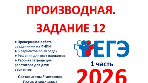 📆На 6-11 учебных неделях ученики 11 класса на уроках алгебры изучают тему “Применение производной к исследованию функций" (16 ч) Уроки 17-32. 🆗ЕГЭ профиль (1 часть) ОК + Проверочная работа "Производная. Задание 12" digital.wildberries.ru/offer/203535 Сделали сверку с ФИПИ в ноябре 2025, есть небольшие корректировки...