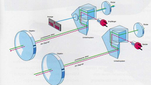 Если мы хотели бы рассмотреть что-то на большом расстоянии, мы могли бы взять две выпуклые линзы и поместить их на одной линии друг за другом. Первая линза будет собирать свет от далекого объекта и строить четкое его изображение на небольшом расстоянии позади себя. Эта линза называется объективом, она расположена ближе к объекту. Вторая линза увеличивает изображение, построенное первой, также как лупа увеличивает газетный текст. Если поместить эти линзы в закрытую трубу – получится телескоп. Бинокль – это два телескопа, смонтированные вместе и дающие изображения для обоих глаз...