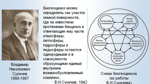 Биогеоценоз — совокупность организмов разных видов и различной сложности организации с факторами среды их обитания. В процессе совместного исторического развития организмов разных систематических групп образуются динамичные, устойчивые сообщества. Совокупность всех живых организмов биогеоценоза — биоценоз — включает продуцентов (земные растения), образующих органическое вещество, а также консументов (животные) и редуцентов (микроорганизмы), живущих за счет готовых органических веществ и осуществляющих их разложение до простых веществ, которые снова используются, усваиваются растениями...