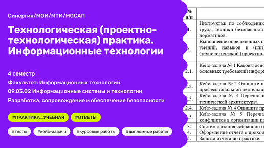 Технологическая (проектно-технологическая) практика. Факультет Информационных технологий. Производственная практика. Синергия/МОИ/МТИ/МОСАП