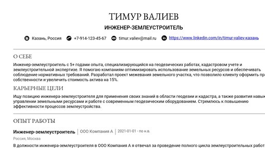 Пример резюме инженера по землеустройству 2025 - Как составить
