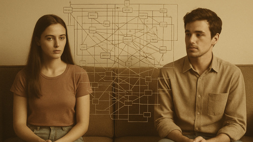 А поговорим о современной эпидемии, которая поражает думающие и ранимые пары? Эпидемии под названием «гиперпроработка». Это когда отношения из живого процесса превращаются в бесконечный семейный психоаналитический сеанс на двоих, где любая пауза, любое неверное слово тут же выносится на разбор, препарируется скальпелем интерпретаций и заносится в протокол нерешённых проблем. Знакомо? «Нам надо поговорить», «Что ты НА САМОМ ДЕЛЕ имел в виду?», «Это паттерн из твоего детства», «Мы недостаточно прорабатываем наши границы»...