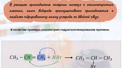 Правило Марковникова, сформулированное русским химиком Владимиром Марковниковым в 1869 году, является одним из фундаментальных принципов органической химии. Оно звучит так: При присоединении воды или галогеноводородов к несимметричному алкену водород присоединяется к более гидрогенизированному атому углерода, а электрофильная часть (несущая отрицательный заряд) — к менее гидрогенизированному.  Это правило долгое время считалось незыблемым, однако в химии, как и в любой науке, всегда есть исключения...