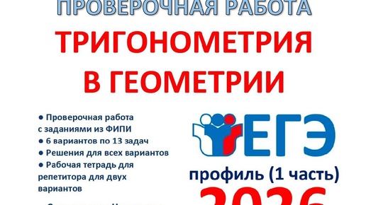 ❗Внимание❗⭐Обновление⭐ 🆗ЕГЭ профиль (1 ч) Опорный конспект + Проверочная работа "Тригонометрия в геометрии" 📥 Скачать на WB: digital.wildberries.ru/offer/151729 🔹Полная сверка с ФИПИ декабрь 2025 (кто брал, скачайте бесплатно) 🔹По сравнению с 2025 годом вернулись несколько задач из старого банка. 🔹Проверочная работа в 6 вариантах по 13 заданий в каждом варианте...