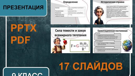 Материал ЗДЕСЬ Для учителя: Профессионально структурированный материал для урока в 9 классе. Презентация сочетает теоретическую глубину с доступной подачей. Готовые слайды в формате PPTX позволяют адаптировать контент под особенности класса. Для ученика: Увидите, как законы Ньютона объясняют всё — от падения яблока до движения планет. Научитесь решать задачи на гравитацию и поймёте, почему мы не замечаем притяжения между обычными предметами. Ключевые преимущества: 1. Полнота охвата — от формулировки закона до границ применимости...