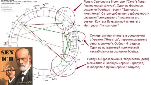 ЗИГМУНД ФРЕЙД "Каждый психиатр... Психически нездоров!" (с) Карта рождения Зигмунда Фрейда показательна с точки зрения определения у него психических отклонений, которые со временем выросли в создание им учения, которое неоднозначно оценивается большинством трезвомыслящих людей...