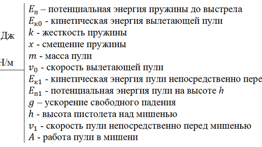 Полное условие задачи: Из пружинного пистолета выстрелили вертикально вниз в мишень, находящуюся на расстоянии 2 м от него. Совершив работу 0,12 Дж, пуля застряла в мишени. Какова масса пули, если пружина была сжата перед выстрелом на 2 см, а ее жесткость 100 Н/⁠м? Какие законы Вы используете для описания характера изменения энергии тела? Обоснуйте их применимость к данному случаю. Краткое условие задачи: Решение задачи: Систему отсчета, связанную с Землей, будем считать инерциальной. При движении...