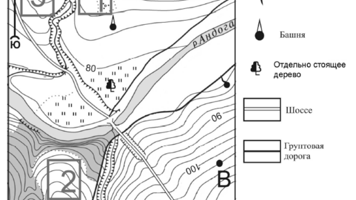 Масштаб - чудо чудесное! Кто его придумал - большой молодец! Масштаб позволяет нам впихнуть огромные объекты и расстояния на маленький кусочек бумаги или экрана. Значение масштаба мы можем увидеть на ЛЮБОЙ карте, стоит его только поискать. Он всегда где-то в районе рамки карты. Он может быть внизу, наверху, в углу. В ОГЭ по географии с масштабом связано задание по топографической карте, где надо найти расстояние от точки до точки. Достаточно просто, если разобраться. Пример: Определите по карте расстояние на местности по прямой от отдельно стоящего дерева до точки А...