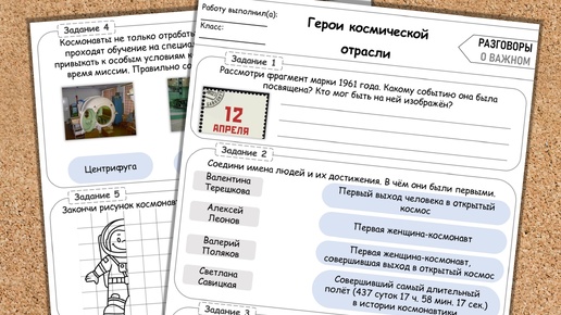 Рабочий лист «Герои космической отрасли» («Разговоры о важном»)