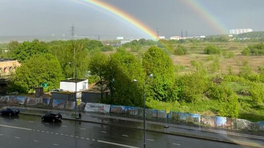 Вот такое красивейшее явление природы мы увидели за окном. Посмотрите не это ли красота,которой можно любоваться бесконечно? На фоне сумерек, зелени и пушистых деревьев, такое волшебное чудо природы! Еще с детства помню эти радужные, самые приятные моменты,как с друзьями со двора долго наблюдали за ней. Радуга одна из самых любопытных природных явлений, которое всегда дарит радость и веру в лучшее! Думаю со мной каждый согласиться! Радуга - это лучи солнца, которые проходят через капельки...