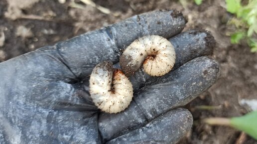 Скосила горчицу, через несколько дней стала сажать в эту грядку перцы, как ни копну лунку- всюду попадается такая "красота". Явились горчицей полакомиться. Такой живности в огороде у меня немало, грядки-то органикой щедро заправляются. Наверняка Вы не раз встречали в компостной куче этих жирных белых личинок. Кто-то их давит, кто-то выбрасывает, кто-то курам скармливает- ведь большинство считает, что это злостный вредитель, который, если уж попадет в грядку, сразу сожрет корни культурных растений...