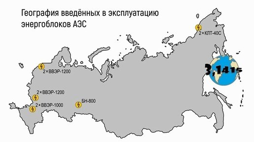 На начало 2023 года в России в промышленной эксплуатации на 11 атомных электростанциях и в НИИ атомных реакторов находятся 39 энергоблоков. С 2014 года, на 4 АЭС, входящих в Единую Энергетическую Систему России (ЕЭС), в промышленную эксплуатацию были введены семь энергоблоков: Энергоблок № 3 Ростовской АЭС с реактором ВВЭР-1000. (2015) Энергоблок № 4 Белоярской АЭС с реактором БН-800 — крупнейший в мире энергоблок с реактором на быстрых нейтронах. (2016) Энергоблок № 6 Нововоронежской АЭС с реактором...