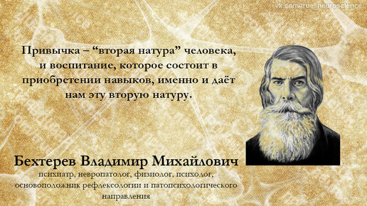 Бехтерев Владимир Михайлович, основоположник рефлексологии: "Привычка – "вторая натура" человека, и воспитание, которое состоит в приобретении навыков, именно и даёт нам эту вторую натуру." Всё человеческое...