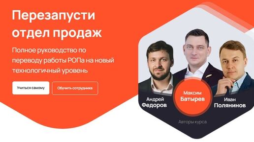 В нашей подборке ТОП-30 тренингов по обучению управлению отделом продаж вы найдете лучшие программы для РОП и директоров: онлайн-курсы, очные тренинги в Москве и по всей России. Практика, кейсы и инструменты помогут выстроить систему, организовать работу команды и гарантировать выполнение плана. «Перезапуск отдела продаж» — практическая программа в формате бизнес-симулятора. Курс создан Максимом Батыревым, Андреем Федоровым и Иваном Поляниновым для руководителей отделов продаж. Вы научитесь управлять продажами через цифры, внедрять системный подход и повышать эффективность команды...