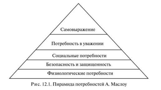 Теория мотивации по А. Маслоу. Сущность ее сводится к изучению потребностей человека, которые условно можно разделить на пять групп: 1) физиологические потребности, необходимые для выживания человека (в еде, воде, отдыхе и т.д.); 2) потребности в безопасности и в уверенности в будущем - защита от физических и других опасностей со стороны окружающего мира и уверенность в том, что физиологические потребности будут удовлетворяться и в будущем; 3) социальные потребности - необходимость в социальном...