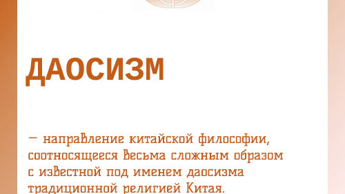 ДАОСИЗМ — направление китайской философии, соотносящееся весьма сложным образом с известной под именем даосизма традиционной религией Китая. Обыкновенно различаются даосизм как определенный стиль философской критики (дао цзя) и даосизм как совокупность духовных практик (дао цзяо), но это деление достаточно условно. Под дао цзя подразумевают преимущественно доциньский даосизм, связываемый с текстами, авторство которых приписывается Лао-цзы и Чжуан-цзы. Особый ореол окружает Лао-цзы — всеми признанного патриарха философствующих в даосском стиле...
