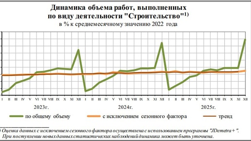 ℹ️ По данным Росстата, ввод жилья в России в 2025 году составил 108,1 млн.м². Это на 0,4% больше, чем в 2024 году. 🏗️ Объем работ, выполненных по виду деятельности "Строительство", в 2025 г. составил 18 815,1 млрд.₽, или 102,5% (в сопоставимых ценах) к уровню 2024г., в декабре 2025 г. - 2 881,2 млрд. ₽, или 104,8% 🏙 В рамках жилищного строительства в декабре 2025г. (январе-декабре 2025г.): 🏗️ возведено 3,0 (13,9) тыс. многоквартирных домов 🏠 населением построено 31,6 (466,0) тыс. жилых домов 👨👩👧👦 всего построено 277,6 (1 341,9) тыс...