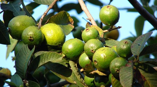 В нашем саду в Фукуоке растет гуава. Когда мы приезжали, ее плоды были ярко-зелеными, не поспела еще. Таро увидел и кричит: "Посмотри! Как много гуавы, но пока она синяя!" Почему "синяя", когда "зеленая"? Дело в том, что в японском языке слово "ао" (синий), иногда используется для обозначения зеленого цвета ("мидори"). Это языковое и культурное явление связано с историей и традициями. До периода Мэйдзи (1868-1912) в японском языке не было особого разграничения между "зеленым" и "синим", был только один термин - "ао"...