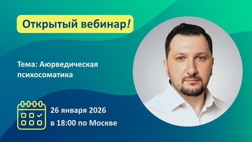 ! Бесплатный вебинар с врачом-иммунологом, специалистом по психосоматике и психоиммунологии Аплевичем Олегом Валерьевичем. Тема: Аюрведическая психосоматика: ключевые понятия и модели древнего учения аюрведы, как системы врачевания души. Вопросы для обсуждения: ✳️Ключевые понятия аюрведической философии ✳️Анатомия человеческой психики в Аюрведе ✳️Здоровье и нездоровье с позиции психосоматики ✳️Три главные...