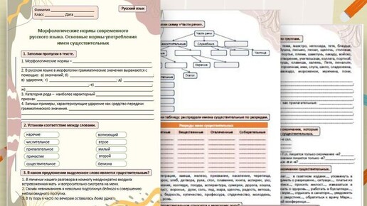 Рабочий лист «Морфологические нормы современного русского языка. Основные нормы употребления имен существительных»