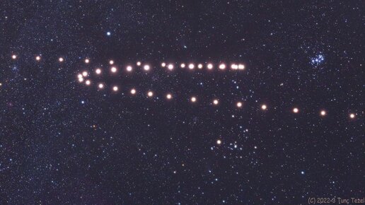 Нажмите, что бы скачать решение и ответы № 3 Это изображение смонтировано из фотографий, полученных с интервалом в неделю. На нём запечатлено движение одной из планет на фоне далёких звёзд. Открыть изображение в новой вкладке Сколько месяцев длилась съёмка? Ответ округлите до целых. Число Что это за планета? Меркурий Венера Марс Уран Нетрудно заметить, что блеск планеты сильно изменяется во время съёмки. Максимум приходится на центр «зигзага». Выберите верное...