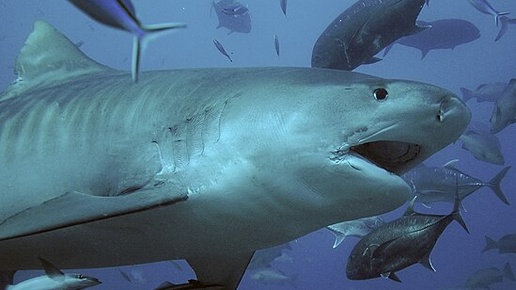 Научное название: Galeocerdo cuvier 📏 Размеры: Длина тела: в среднем 3–4 м, рекордные особи — до 5,5 м; Масса: обычно 400–600 кг, максимальная зарегистрированная — более 900 кг. 🍽 Диета: Тигровые акулы — всеядные хищники. В их желудках находили рыбу, морских черепах, птиц, тюленей, кальмаров, акул помельче и даже предметы, выброшенные человеком (пластик, металл). Благодаря универсальной диете их прозвали «мусорными баками океана». 🌍 Ареал обитания: Обитают в тропических и субтропических водах всех океанов...