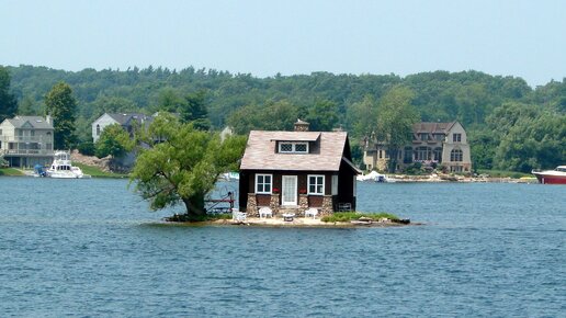 В состав одного из архипелагов проходящем вдоль границы Америки и Канады входит большое количество островов. Архипелаг Thousand Islands имеет остров, который занимает площадь всего 306 квадратных метра, что является самым маленьким кусочком суши в мире. Семья Сайзленд, выкупившая это место в 1950 году, несмотря на скромное количество земли обустроило остров. Им хватило пространства, чтобы вырастить немаленькое дерево и построить небольшой дом на острове. А перед его крыльцом даже разместить кухонный стол со стульями для пикников...