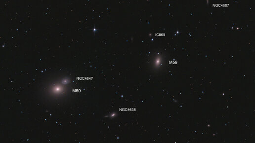 Галактики М59 и М60 в созвездии Дева