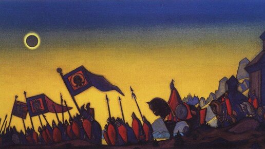 В истории русской словесности существует только один грандиозный памятник, целиком и полностью обыгрывающий по-настоящему космическую тему – тему затмения Солнца. Это «Слово о полку Игореве», прекрасная древнерусская песнь, которую автор начинает и заканчивает с оглядкой на небеса. По сюжету, князь Игорь выдвигается в военный поход против половцев. Как только он переходит реку Донец и оказывается на вражеской территории, на предвечернее солнце находит тень. «Тогда Игорь взглянул на светлое солнце...