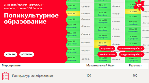 Поликультурное образование (Синергия/МОИ/МТИ/МОСАП – вопросы, ответы, 100 баллов)