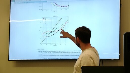 На этих занятиях мы научились работать с библиотекой pyspark.ml, которую можно назвать аналогом sklearn, но для работы в Spark. Преимущество этой библиотеки - она позволяет обучать модели распределенно, однако хорошо себя показывает только на больших объемах данных. Обучение и создание моделей примерно такое же как в sklearn: импортируем нужную модель, берем данные и обучаем на них. Также есть инструменты для токенизации, работы с текстом и проверки качества модели. Ну и классификация с кластеризацией такие же как в sklearn...