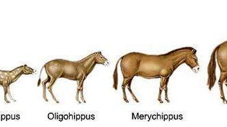 Эволюция лошади началась еще 55 миллионов лет назад, а началось все с гиракотерия – вымерший род непарнокопытных, который считается предком всех нынешних лошадей. Размеров он был совсем не больших, около 20 сантиметров в плечах, который питался листьями и фруктами. Зверек совсем не был похож на нынешних лошадей: у него была выгнутая спина, короткая шея и морда, короткие ноги и длинный хвост, но у него уже были наросты на концах его конечностей, которые напоминали копыта. А от хищников ему помогал спрятаться его маскировочный окрас...