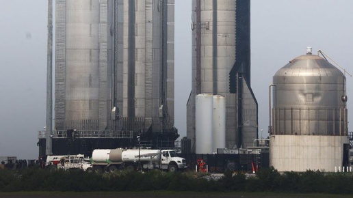 Starship готовится к старту. На редком фото показали космический корабль сразу с двумя ускорителями Super Heavy