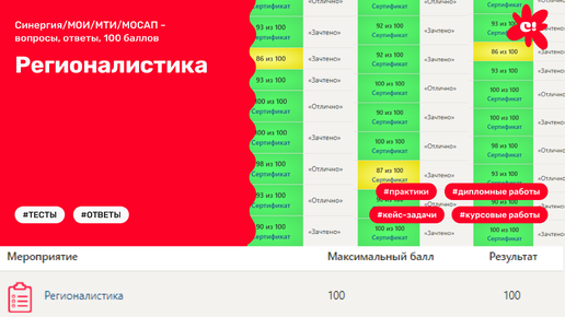 Регионалистика (Синергия/МОИ/МТИ/МОСАП – вопросы, ответы, 100 баллов)
