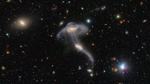 Телескоп «Субару» запечатлел пару взаимодействующих галактик, напоминающих медузу