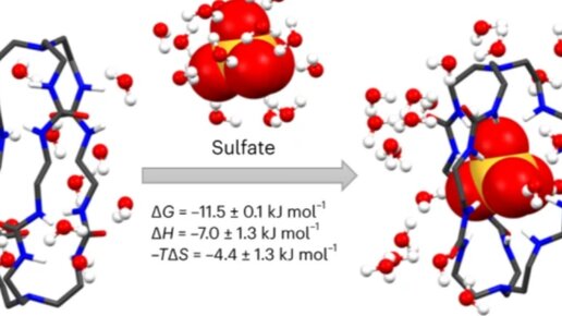 Китайские химики синтезировали незаряженный молекулярный каркас, способный селективно связывать сульфат-анионы в воде и водно-органических смесях. Высокие константы связывания ученые объяснили прочными водородными связями между атомами кислорода в сульфат-анионе и амидными группами каркаса. Исследование опубликовано в Nature Chemistry. Селективно связывать многозарядные ионы в воде очень сложно из-за того, что обычно их энергия взаимодействия с водой гораздо больше, чем энергия взаимодействия с каким-либо лигандом...