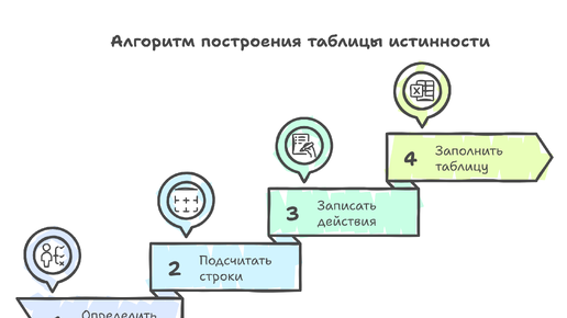 Таблица истинности — это таблица, которая показывает все возможные комбинации значений входных переменных (обычно это "правда" или "ложь", или 1 и 0) и результат логического выражения для каждой из этих комбинаций...