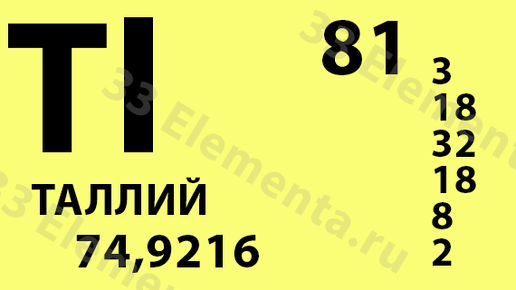 Здравствуйте! Обзор представлен в рамках исследовательского проекта https://www.33elementa.ru (Спектральный анализ по 35 элементам на базе клиники МЧС России) В данном обзоре Мы рассмотрим не столь популярный, но достаточно опасный токсичный химический элемент – Таллий Thallium (Tl), располагающийся в III группе периодической таблице Менделеева под порядковым номером № 81. Таллий представляет их себя редкий рассеянный элемент, серый серебристый блестящий металл. В природе он базируется на двух стабильных изотопах, Tl203 (29,5%) и Tl205 (70,5%)...