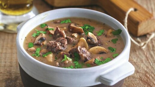 Такой супчик хоть и готовится просто, получается наваристым и вкусным. Готовится из говядины и грибов. Грибочки вы можете взять любые, даже вешенки или шампиньоны – более экономный вариант. Нам потребуется: - литр воды; - полкило говядины; - горсточка грибов; - имбирный корень, кольраби, соевый соус, жир, любые специи. 1. Промойте говядину, порежьте порционными кусочками, поджарьте на жирке вместе с измельченным имбирем...