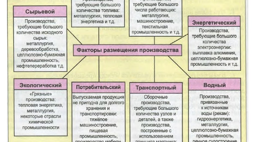 Факторы размещения — это условия, которые определяют выбор места для размещения предприятий и учреждений. Они включают экономические, технологические, социальные и экологические аспекты, формируя оптимальные условия для эффективного и устойчивого развития производства...