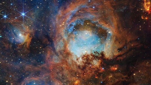 Космические подушечки лап. В честь трех лет исследований Вселенной телескоп Джеймса Уэбба проник сквозь толстые пылевые слои участка Туманности Кошачья Лапа. Благодаря инфракрасному зрению наш телескоп Уэбб может видеть сквозь облака газа и пыли, раскрывая то, что скрывается beneath. В данном случае это набор синих светящихся областей космоса, которые можно сравнить с подушечками лап кошки...