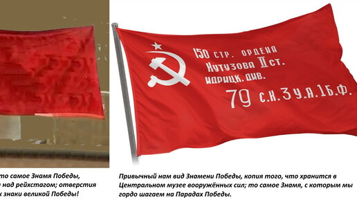 Главный символ Победы Советского Народа над фашистской Германией Знамя Победы, то самое знамя, которое было водружено в мае 1945 года, как оно выглядело на самом деле, кем установлено, где хранится, и какое знамя мы видим в Центральном музее Воинской Славы. Сразу хочу отвергнуть все досужие версии по поводу кем именно было водружено Знамя Победы над Рейхстагом. Указом Президиума Верховного Совета СССР давно поставлены все точки над «и». Увы, в этом Указе, нет фамилии младшего лейтенанта Алексея...