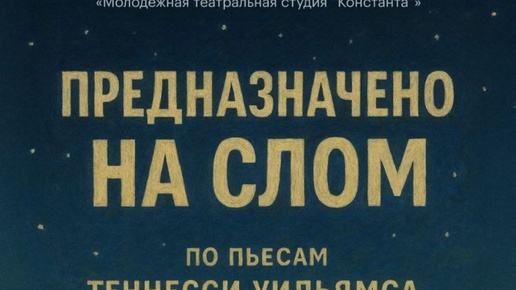 ✨ Спектакль «ПРЕДНАЗНАЧЕНО НА СЛОМ» 🎭 От театральной студии «Константа» ✅ В основе новой работы четыре одноактные пьесы Теннесси Уильямса, классика американской драмы XX века. 💙 Спектакль получился зрелым и жёстким, но хочется верить, что зрителю удастся также почувствовать нежность и сострадание к человеку. 💳 Пенсионеры, студенты, школьники: 300 рублей 🚫 Возраст: 18+ 📆 17...