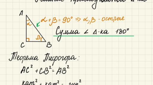 👇 Что такое Теорема Пифагора? 👇 Формулировка ТЕОРЕМЫ звучит так: сумма квадратов катетов равна квадрату гипотенузы. В 7 классе дети знакомятся с геометрией и постигают теорему Пифагора. На самом деле, лучше ее понять сразу, иначе дальше непонимание будет накапливаться снежным комом. Так вот, на самом деле ничего страшного в этой теореме нет! Запомните, она используется только в ПРЯМОУГОЛЬНЫХ треугольниках, то есть там где есть угол в 90 градусов. Так же, гипотенуза - сторона, которая лежит напротив прямого угла(90 градусов)...