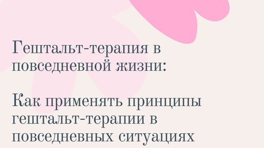 Гештальт-терапия в повседневной жизни: Как применять принципы гештальт-терапии в повседневных ситуациях