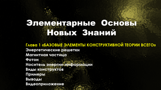 Элементарные Основы Новых Знаний. глава 1 "Базовые элементы Конструктивной Теории Всего"