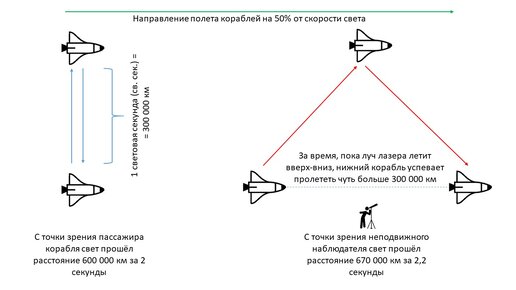 В прошлый раз мы выяснили: чем больше наша скорость, тем медленнее течет время для нас. Это следствие специальной теории относительности, которое следует из постоянства скорости света в любом направлении. На самом деле теория относительности проделывает крутые фокусы не только со временем и не только из-за скорости. Сегодня немного углубимся в эту тему, после чего, надеюсь, каждый прочитавший будет немного иначе смотреть на мир. Начнем с того, что в примере из прошлого поста про теорию относительности...