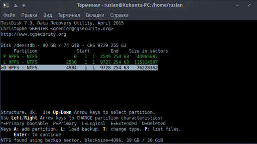 Восстановление данных с помощью testdisk [oHK-xLetgTs]