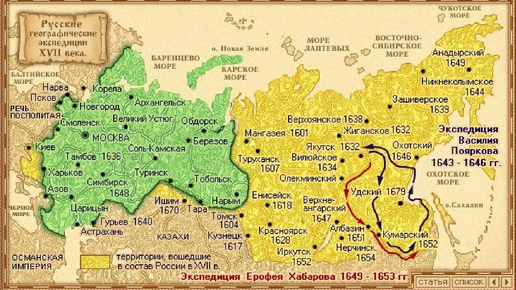 Территория нашей страны исторически начала складываться за счёт расширения Московского княжества. 13 век 14 век 15 век К концу 15 века Изначальное направление переселения — на север и северо-восток: заселение бассейнов Северной Двины, Печоры, верховьев Камы: выход к побережью Белого моря 16 век В XVI в. Русское государство включает в свой состав весь бассейн Волги и выходит к Каспийскому морю и Уралу, открыв путь в Сибирь вплоть до Тихого океана. 17 век Присоединение Сибири и Дальнего Восктока. На...